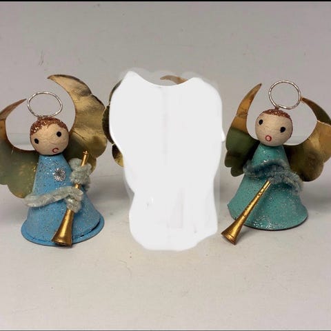 I toppen af denne trompet kan sættes et lille juletræslys, det her forment været en del af julepynt til jul og har stået på et bord eller hylde