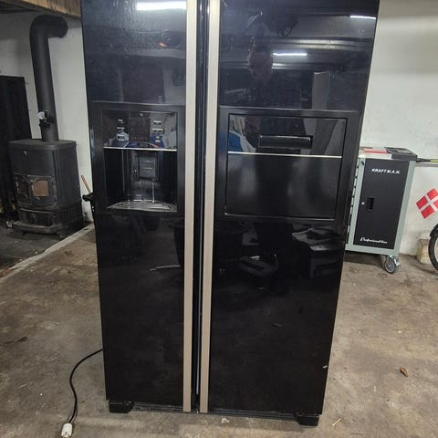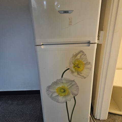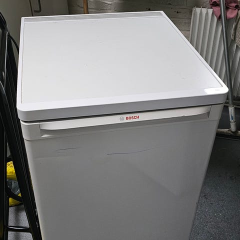 Køle/fryseskab i fuld funktion. Har lidt kosmetiske brugsspor, og håndtaget mangler. God som ekstra køl/frys til bolig, værksted eller kolonihave.