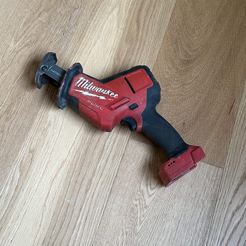 Milwaukee M18 FUEL Sawzall med ONE-KEY og 4-trins mode-vælger (1–4 + One-Key-profil). Den her den største og toppen af poppen af Milwaukees bajonet save. Den er kun brugt privat og fremstår i fuldt funktionel stand med normale brugsspor. Ideel til alt fra nedrivning til præcise beskæringer i træ og metal.