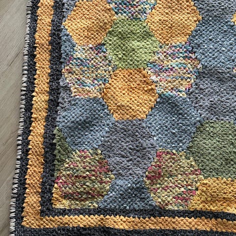 kludetæppe genbrug genbrugsstof tekstilkunst kunsthåndværk genbrugshjem løber løsetæpper pasteller genbrugstekstil kunsttæppe