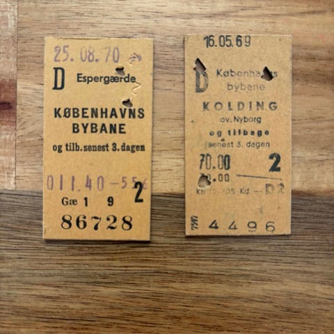 Københavns Sporveje Billet til linje 5. Gyldig til en uafbrudt rejse med linje 5 den sidste sporvognsdag i København. Billetpris 5,00 kr.