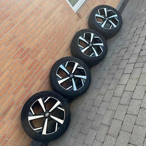Pæne og velholdte alufælge med sommerdæk 225/45R19 (ca. 3 - 4 mm tilbage) med TPMS sensors. Prisen er for alle 4 . realistisk bud modtages. Originale alufælge til Nissan Qashqai 2019, men passer også til andre bilmærker.