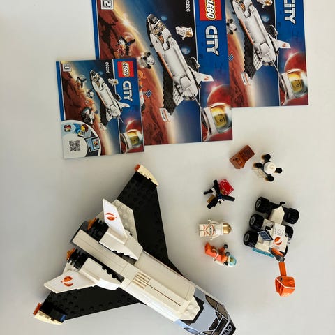 Dette byggesæt til børn omfatter en stor flertrinsraket med cockpitmodul til 2 minifigurer, der kan åbnes, roverlastmodul, stor rakettransportkravler med førerhus, der kan åbnes, larvefødder, vipbar raketstøtte og affyringsrampe, rovertransportbil med lad og leddelt gribearm, der er ny i juni 2019, samt en rover med udtrækkelig arm og borespids.