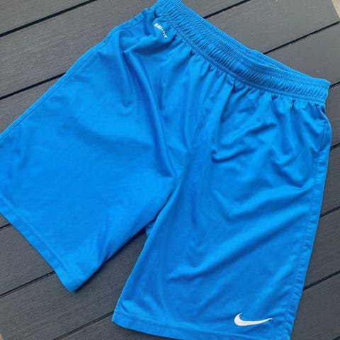 Nike børn shorts i størrelse 173, unisex model, fremstillet i rød polyester og bomuld. Shortsene har elastisk talje og er designet til børn.