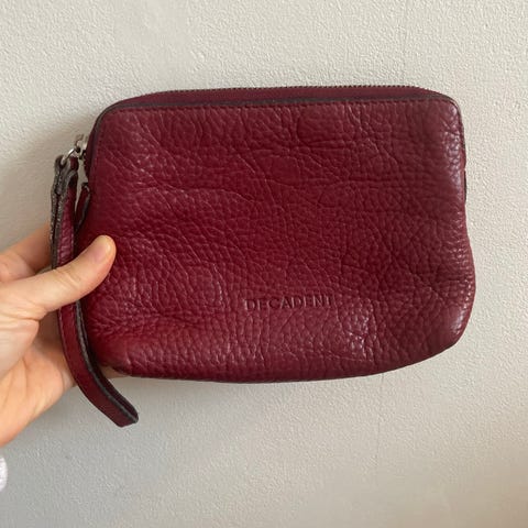 Clutch, Decadent, Pudder/ beige smart clotch med hank. Lille inderlomme.