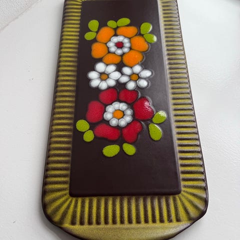 Smukke ældre håndmalede keramik, tallerkener, små fade med kant i lertøj med fint abstrakt mønster. De er alle i flot og intakt stand med alm aldersrelateret brugsspor i bund (se billeder)