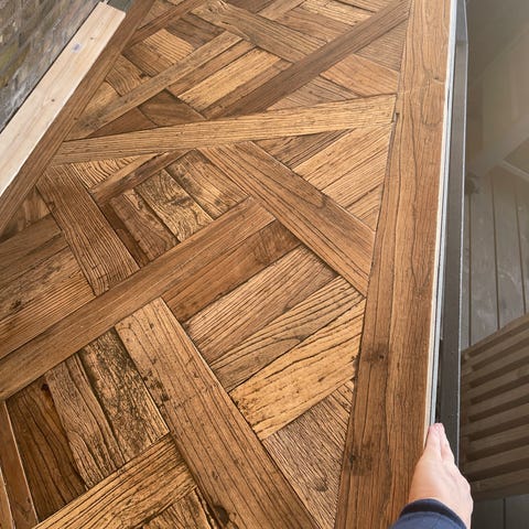 Fint træbord med sortlakerede metalben.