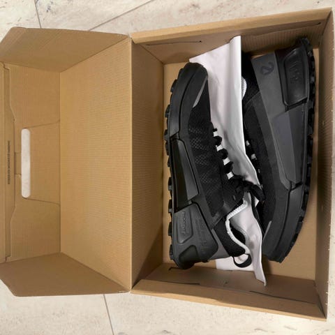 ECCO Biom 2.0 GoreTex i størrelse 44. Skoene er sorte og designet til daglig brug. Materialet er vandtæt GoreTex med en slidstærk sål, der giver godt greb.