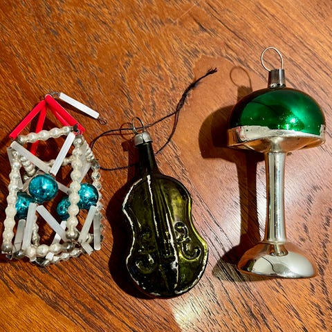 Gammelt juletræspynt i form af vintage glas ornament.