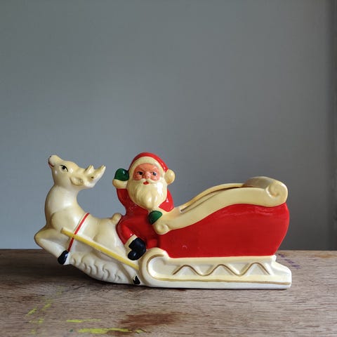 Ukendt original julemand .Udført i træ i original rød farve. H.25 cm.B.18 cm.D.18 cm. Super fin med 2 skuffer til gaver. Meget gammel.