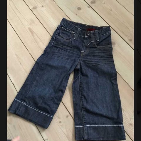 Denim børnebukser i farve blå, unisex model. Fremstillet i denim materiale.
