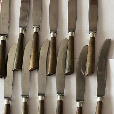 Sæt med 6 knive med håndtag i perlemor fra Raadvad knivfabriker.