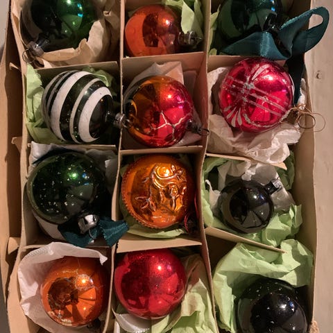 Gammelt julepynt i glas