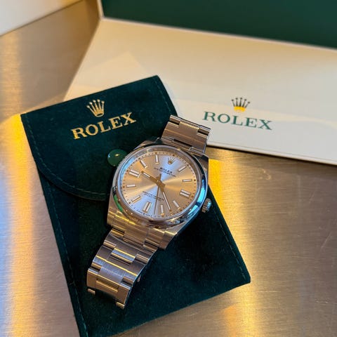 Sælger mit helt nye Rolex Oyster Perpetual 126000 i den eftertragtede beige farve.
