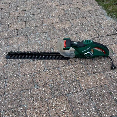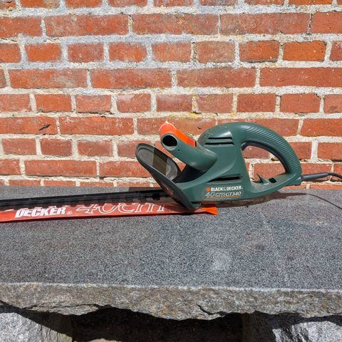 Hækkeklipper med elektrisk motor og håndtag til nem betjening.