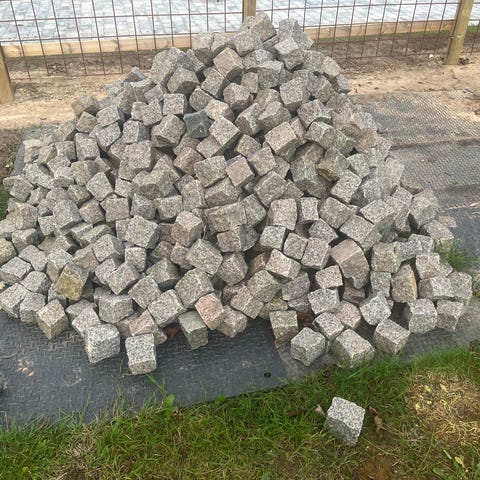 Ca 550 stk , ca 9*9*9cm, chaussesten/ belægningssten