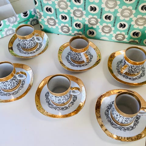 Sjældent mokka-kaffestel 12 kopper og 12 underkopper