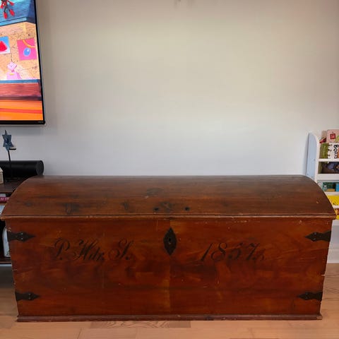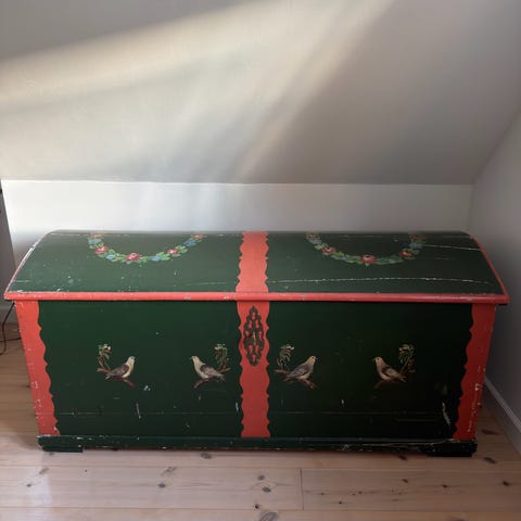 Hvidmalet gammel egetræskiste