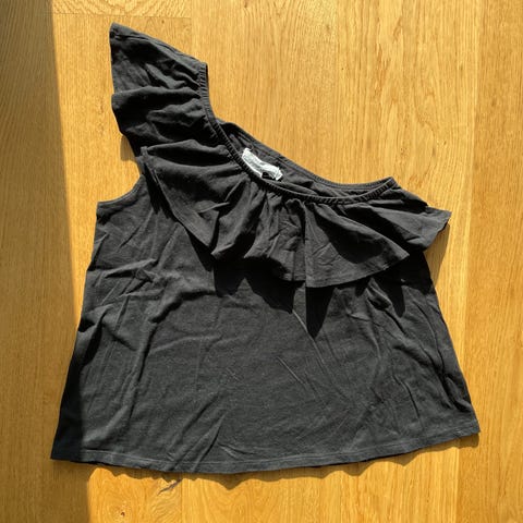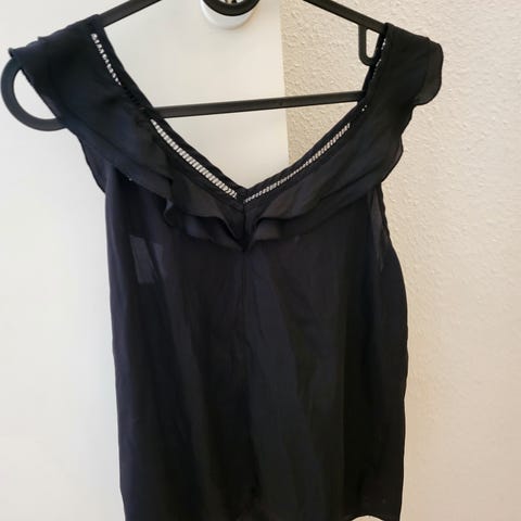 Sleeve top med puf ærmer og fine detaljer i sort str.S