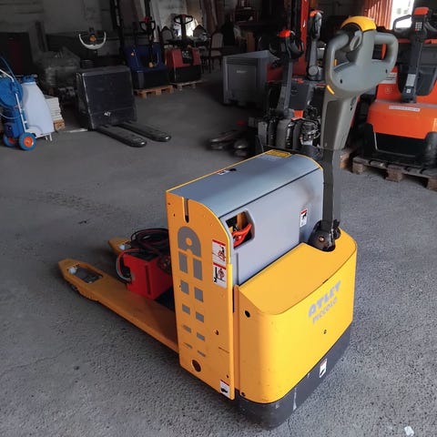 Fin stabler med lader. Kører og løfter ok. Løftehøjde er 2,4 m. Har ikke vild lang køretid per ladning, men har fungeret super til mit brug. Den er begrænset til 1 meter løftehøjde, men det kan nemt fjernes igen. Er flyttet, så måtte købe en gaffeltruck i stedet😅 Jeg kan læsse den.