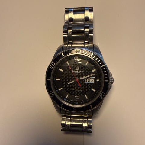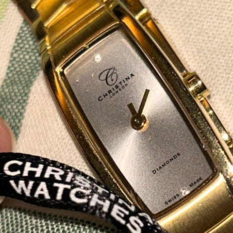 Christina Watches herrearmbåndsur af forgyldt stål, ref. 500GW, quartz værk, hvid skive mrk. Christina London Sapphire Crystal Diamonds Swiss Made med timedikationer i form af ni brillanter på i alt 0.05 ct., VVS1, time, minut- og sekundviser med købs bevis og orginal emballage brugt 1 gang.tel. 28496539.