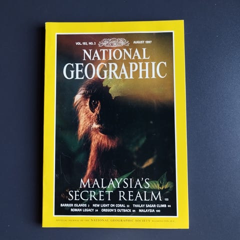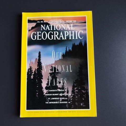 National Geographic Magazine. Engelsk. God stand. Forsiden af bladet viser en del af indholdet.