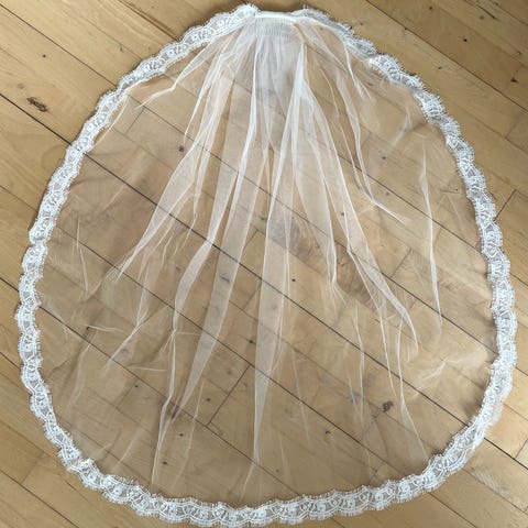 Slør hvor blonden IKKE ER TILRETTET, længde 285-300 cm, kr. 275,-.