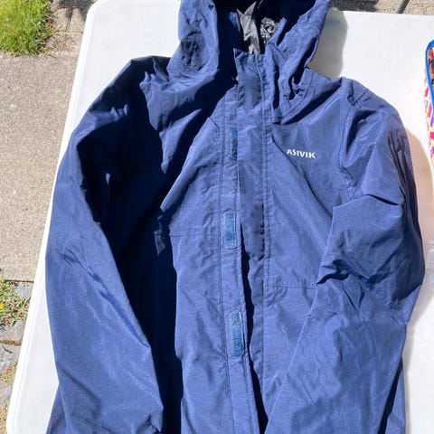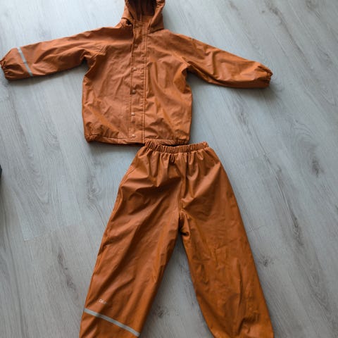 Rigtig fint sæt regntøj til børn i størrelse 116 i mærket Asivik. Ser stort set nyt ud.