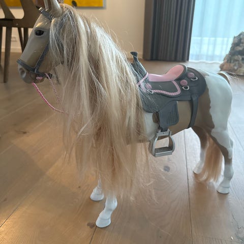 Hesten er i virkelig fin stand, og passer til Our Generation dukkerne. Alt originalt tilbehør følger med plus lidt ekstra.