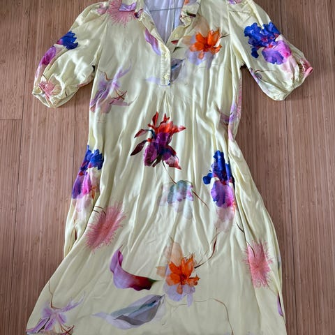Flot sort kjole med hvide prikker fra Nümph i str. 44. Aldrig brugt. Der følger underkjole med. Ny pris 900 kr.