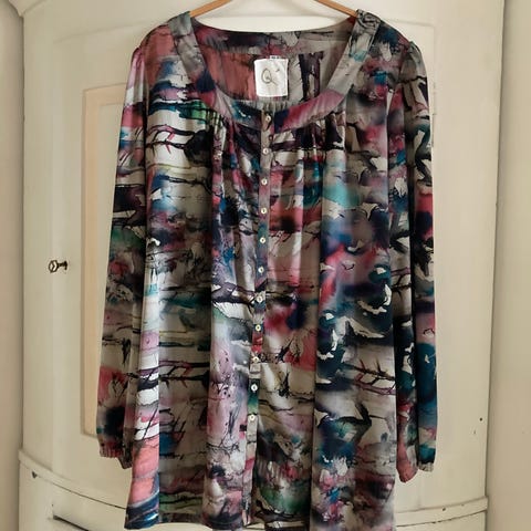 Bluse, Qed London, str. 38, Sød sommerbluse med flot fugleprint og små sten. Størrelse 36/38. Sender gerne