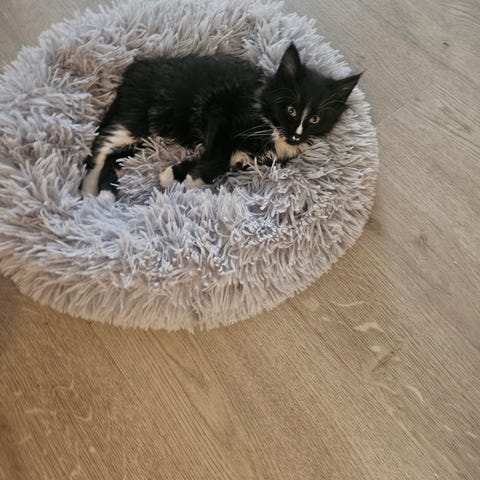 Basse helsort flot stor hankat. Lillepigen smuk 3 farvet pige. Begge er kommet hertil fordi ejeren blev syg og ikke kunne varetage dem mere. Basse har haft rigtig mange knuder i pelsen, de er redt ud nu. Basse er 3 år og lillepigen 2 1/2 år. De er ekstrem glade for hinanden og har også gået sammen siden lillepigen flyttede ind hos Basse som 12 uger gammel. Så vil helst have dem ud sammen. De går i en stor flok med mine egne katte + andre plejekatte i forskellige aldre. De er også vant til stor hund. Begge katte er meget sociale og vil meget gerne kæle. De har altid kun været indendørs. Ingen af dem er neutraliseret