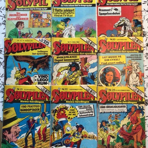 Ca. 250 sølvpil tegneseriehæfter fra 1973-1984 sælges. Der er mellem 1 og 38 fra hvert år.