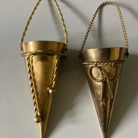Kræmmerhuse, Messing, Kræmmerhuse i messing 3 stk højde 20cm diameter 7,5cm vægt 160gram pr stk og 1 stk højde 15,5cm diameter 6,5cm 4stk samlet absolut fast pris kan ikke forhandles kr 280. Vsk