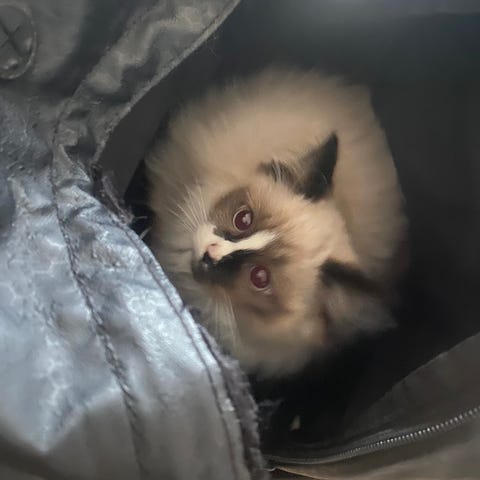 Nougat vil gerne finde sin nye familie. Hendes forældre er ragdolls og hun har tydeligt ragdoll sind og udseende. Hun er tålmodig, nysgerrig og kælen. Nougat er Sundhedstjekket med sundhedsbog og vaccineret to gange. Hun er indekat.