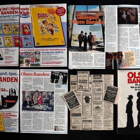 -Fire stk. Levende Billeder fra 1975-77, med omtale af Olsen-Banden samt diverse udklip fra ugeblade om Olsen-Banden samt fire biografannoncer bl.a. for den første Olsen-Banden-film.
