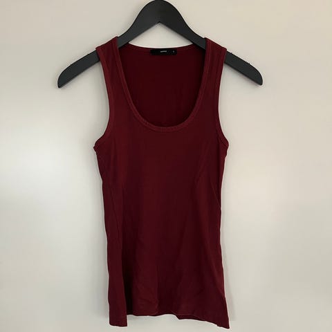 Smuk ferskenfarvet tanktop, designet i et blødt og behageligt materiale, der giver et let og feminint udtryk. Toppen har tynde stropper og en enkel pasform, der gør den perfekt som basislag eller til sommerlige outfits. Den fremstår i meget god stand uden synlige fejl eller pletter.