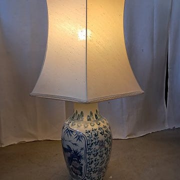 2 Asiatiske bordlamper i pocelæn med skærme, fra 1990erne.