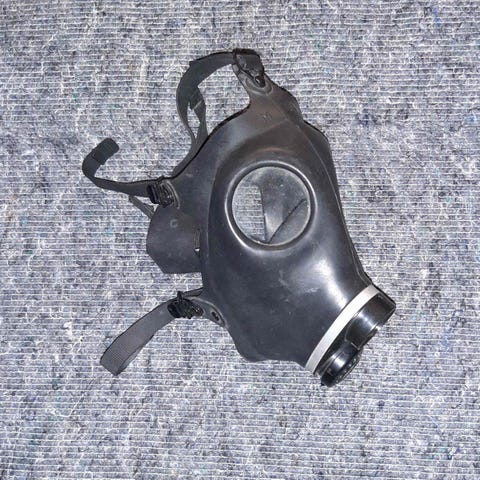 Maske 11: Kraftig klorineret maske fra Slick Chic, str L. Har lynlås for øjne og mund.