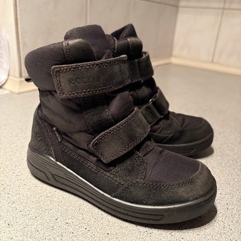 ECCO, helt nye børnesko i størrelse 27, brun farve og materiale i PU-læder. Skoene er designet med høj top og to velcroremme for nem lukning. De har en letvægtsopbygning og er udstyret med TRAYTECH™ teknologi, som giver vandtæt beskyttelse og komfort til børns fødder. Skoene indeholder også ECCO FLUIDFORM™-gummisåler for ekstra fleksibilitet og holdbarhed.
