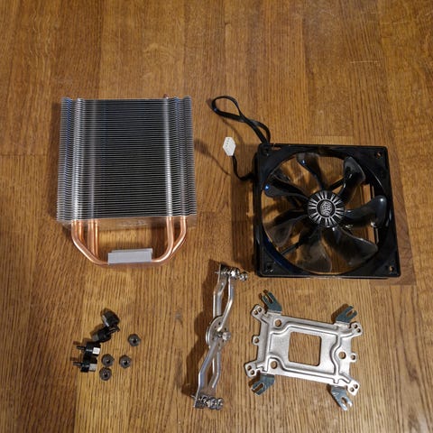 Køleren har seks varmerør forbundet til en spejlbelagt kobberbase og aluminiumsfinner.