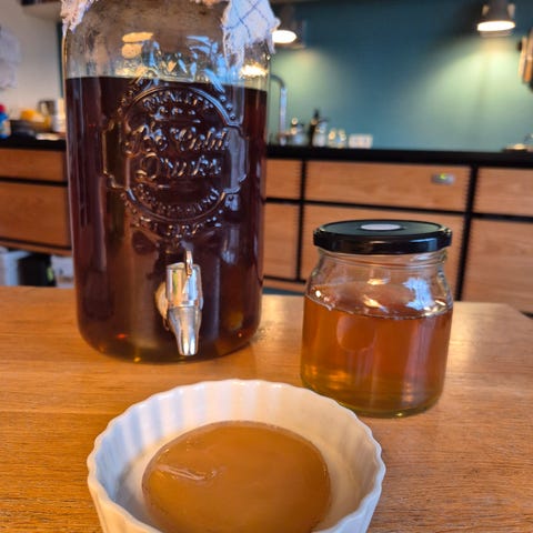 Efter hver brygning, dannes en ny Scoby, så derfor har jeg svampe som andre kan få glæde af.