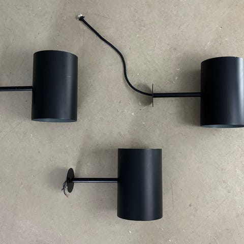 De har været brugt i vores kælder, men pga ombygning vælger vi at sælge dem. De har været væghængt(kabel tilsluttet i væggen) i et 100% tørt miljø.