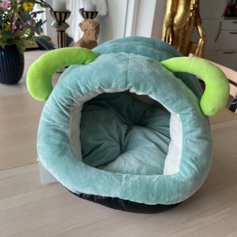 Så sød og hyggelig en hule. - kan deles i 2 ved lynlås, så nem at rengøre. Tilmed er den også pæn at have stående.