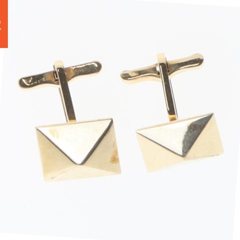 manchetknapper til mænd fremstillet i guld og stål. Produktet kombinerer materialerne guld og stål og er designet til brug som tilbehør til skjorter.