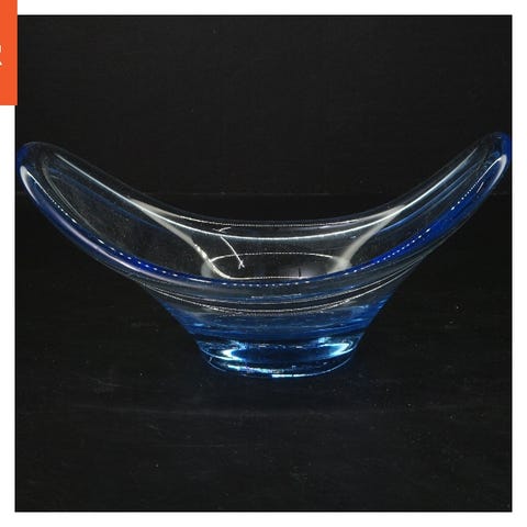 Objektet er et dekorativt glas fad med et unikt bladdesign. Fadet er transparent og har en diameter på 20,5 cm. Det har en bølget overflade og kan anvendes til at holde små genstande eller som et stykke dekoration på et bord eller en hylde.