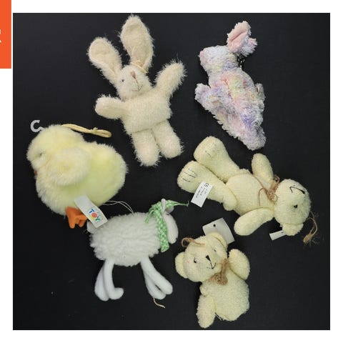 Billederne viser to tøjdyr, hvoraf det ene forestiller en lilla elefant og det andet en blå muldyr. Elefanten har en lille tot lilla hår på hovedet og store lyserøde ører. Muldyr er primært blå med en beige snude og sorte man, samt lilla ører. Begge tøjdyr er ca. 17 cm høje og bløde at røre ved. De er velegnede som bamser til børn.