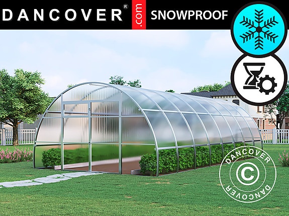 Det solide drivhus i høj kvalitet fungerer naturligvis som et helt almindeligt drivhus i havesæsonen, og så kan du være sikker på, at det også kommer godt gennem vinteren under almindelige vejrforhold. Bemærk venligst, at selv om det er et solidt drivhus, så anbefaler vi alligevel, at du fjerne våd sne fra konstruktionen, da denne type sne kan være meget tung og måske overstige den maksimale vægt pr. m².