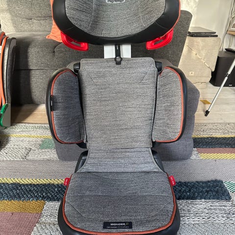 Peg-Pérego Autostole med størrelse 36. Autostolen er designet til børn og har en grå farve med røde detaljer. Den er fremstillet med materialer, der sikrer komfort og sikkerhed under transport i bil.