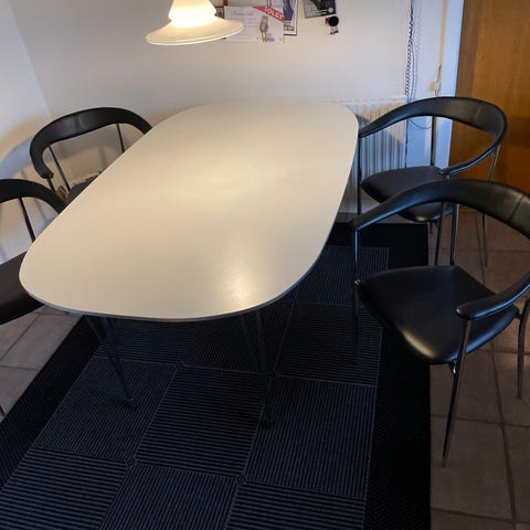 Bord kan tilkøbes tillægsplader. Er med udtræk.